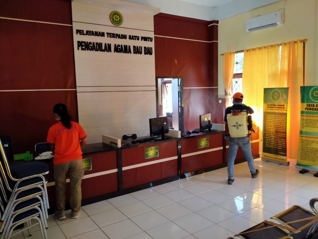 Kepala BPBD Kota Baubau, La Ode Muslimin Hibali, mengatakan, selain kantor Pengadilan Agama, pihaknya juga melakukan penyemprotan dibeberapa tempat, seperti masjid, kantor, pasar dan seluruh sekolah di Kota Baubau.