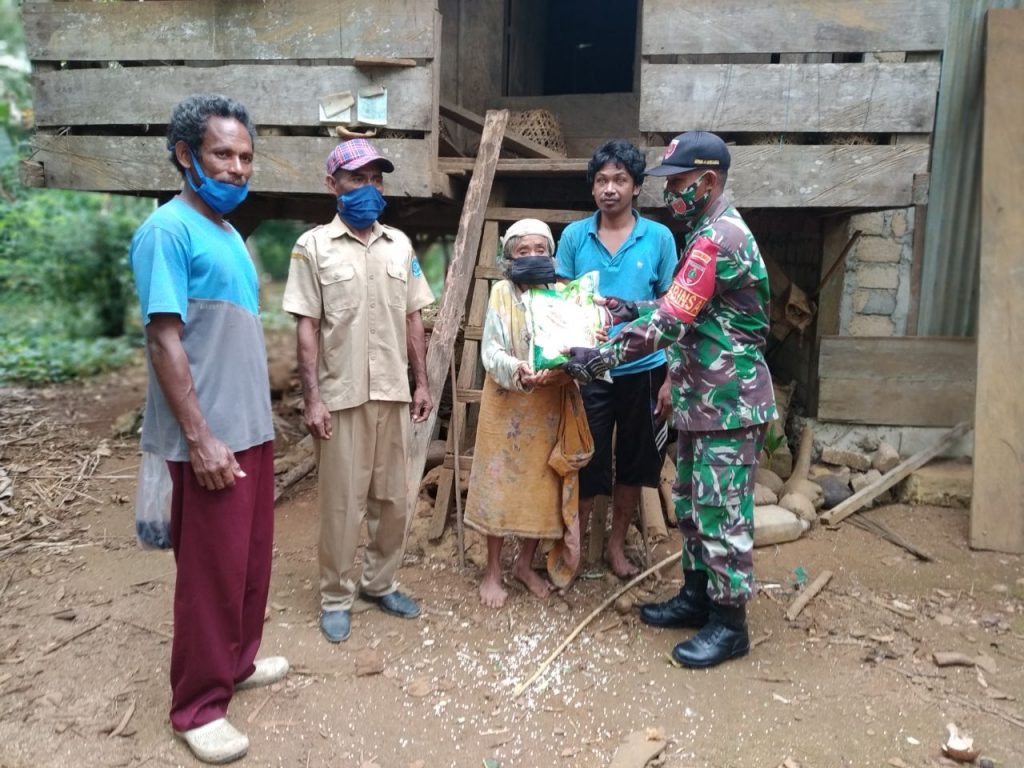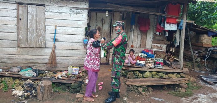 Dengan di dampingi masing masing kepala desa dan perangkatnya, Serda La Ode Iwan terlihat sangat antusias saat mengunjungi rumah para lansia untuk berbagi.