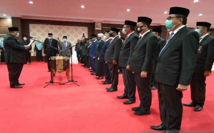 Pelantikan tersebut dilaksanakan di Aula Merah Putih Rumah Jabatan (Rujab) Gubernur Sultra, dengan tetap menerapkan protokol kesehatan termasuk setiap peserta dan tamu undangan diwajibkan melakukan tes cepat COVID-19 sebelum masuk ke ruangan, Jumat (28/8).