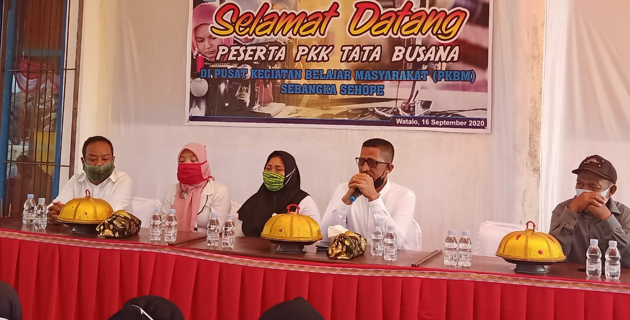 SATULIS.COM, Buton Tengah – Dinas Pendidikan dan Kebudayaan (PK) Kabupaten Buton Tengah (Buteng), Sulawesi Tenggara (Sultra), melalui Pusat Kegiatan Belajar Masyarakat (PKBM) Sebangka Sehope menggelar pelatihan Program Kecakapan Keterampilan (PKK) tata busana level 2 di Kecamatan Mawasangka, Rabu (15/09/2020).
