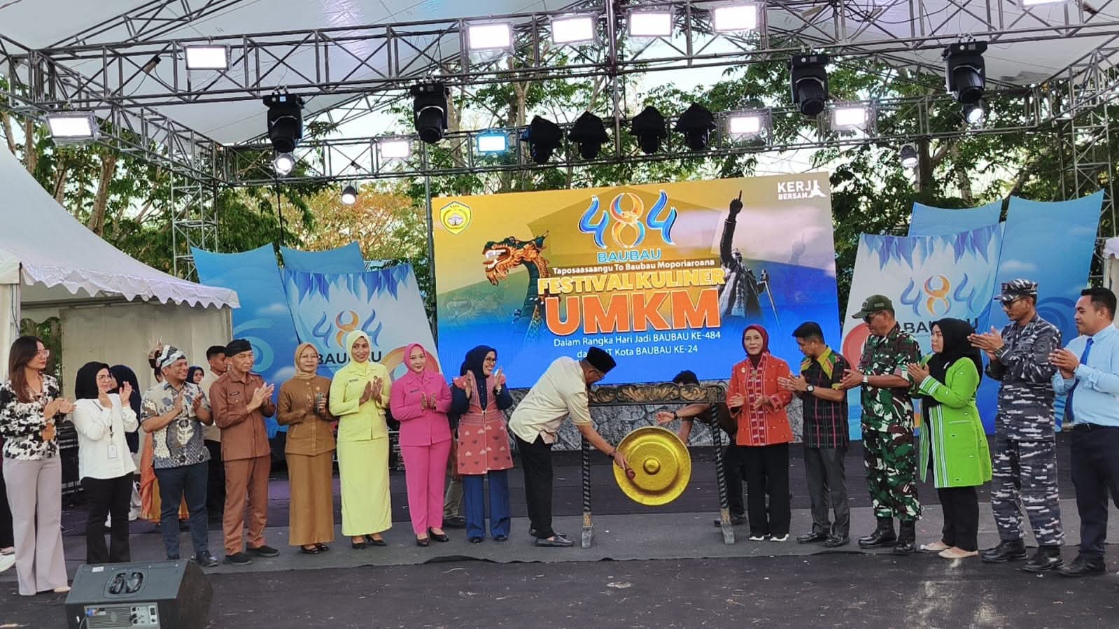SATULIS.COM, Baubau – Festival Usaha Mikro Kecil Menengah (UMKM) dalam rangka memperingati Hari Ulang Tahun (HUT) Kota Baubau ke-24 sebagai daerah otonom dan hari jadi ke-484. Berlangsung pada 14-17 Oktober 2025 di kawasan Kotamara, Festival itu secara resmi dibuka oleh Wali Kota Baubau H Yusran Fahim, SE yang ditandai dengan pemukulan gong sebanyak 3 kali pada Selasa (14/10/2025).